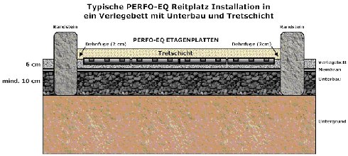 Auf PERFO-EQ - Platten wird normalerweise eine Deckschicht aufgebracht, beim Bau von Reitplätzen z.B. eine Tretschicht aus Reitsand oder Granulat. |