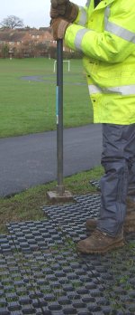 | Die PERFO-Matten müssen wenn sie richtig eingebaut werden vollständig in den Boden kompaktiert sein, damit die optimale Tragfähigkeit erreicht wird. Unzurreichende Kompaktierung kann dazuführen, dass später Spurrillen oder Unebenheiten auftreten können, sobald die Fläche befahren wird. |