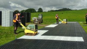 Clydau Gemeindezentrum (GB)Parkfläche auf Splitt |